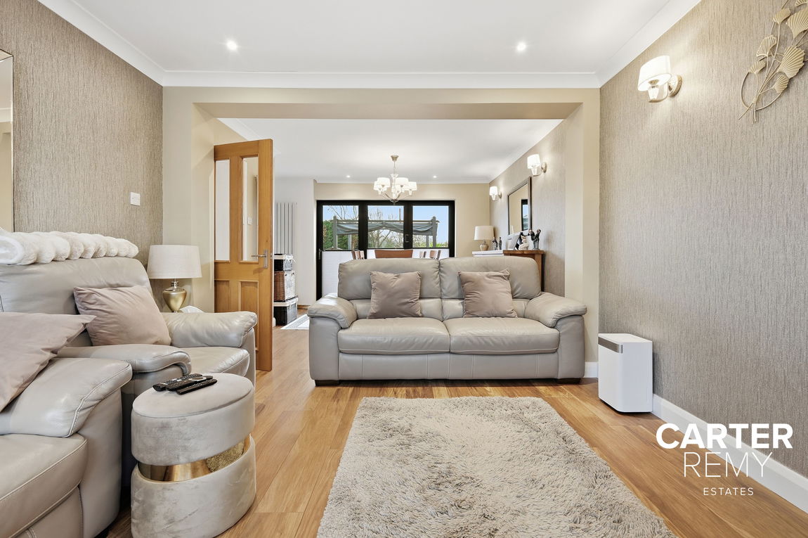 The home boasts a generous open living and dining area, perfect for both relaxing and entertaining, seamlessly flowing into a stunning, well-appointed kitchen with ample space for all day-to-day appliances. Large windows provide lovely views over the beautifully maintained rear garden, creating a bright and airy atmosphere.