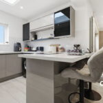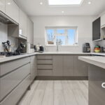 - Modern fitted kitchen with garden views