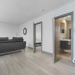 The accommodation comprises: Spacious lounge with quality furnishings and natural light; open plan fully equipped kitchen with integrated appliances; double bedroom with fitted wardrobes and bedside furniture; modern bathroom with shower over bath and contemporary fixtures.